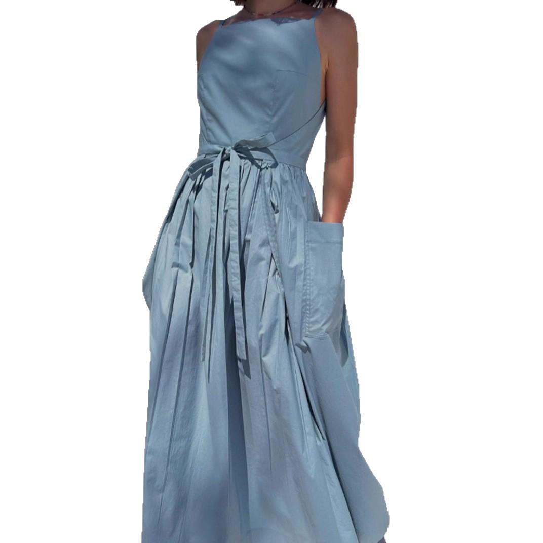 New Side-seam Sleeveless Fashionable Sun Dress for Women cm sky blue