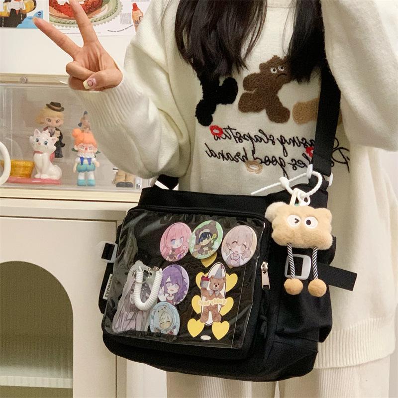 Preppy Minimalistisk Anime Messenger Bag - Stor Kapacitet, Transparent Märke, Dam Crossbody Ita Bag svart