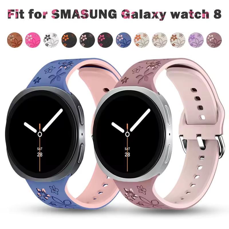 20mm Silikonarmband Blommönster Floral Graverad Tvåfärgad För Amazfit GTR, Huawei, Garmin Samsung Galaxy Watch 7 6 5 4 elfben