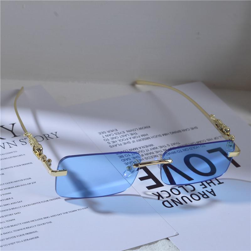 Vintage Luxury Golden Fahsion Glasses Cool Tiger Stand Women'S Frameless Black For Men And Women Outdoor Travel Anti Glare Glass