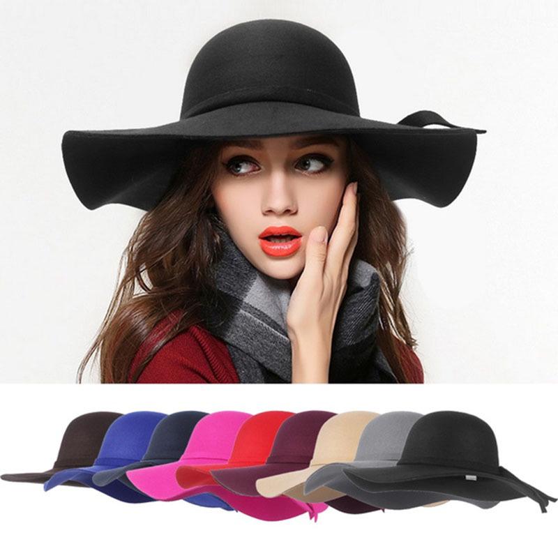 Fashion Couple Feather Woolen Top Hat Flat Brim Big Eaves Jazz Hat 56-58cm beige