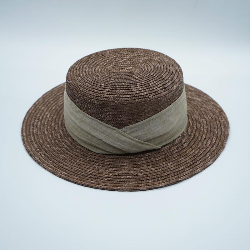 French Retro Brown Coffee Straw Flat Top Top Hat Women'S Summer Elegant Foreign Trade Sunshade Vacation Beach Sunscreen Straw Hat 56-58cm