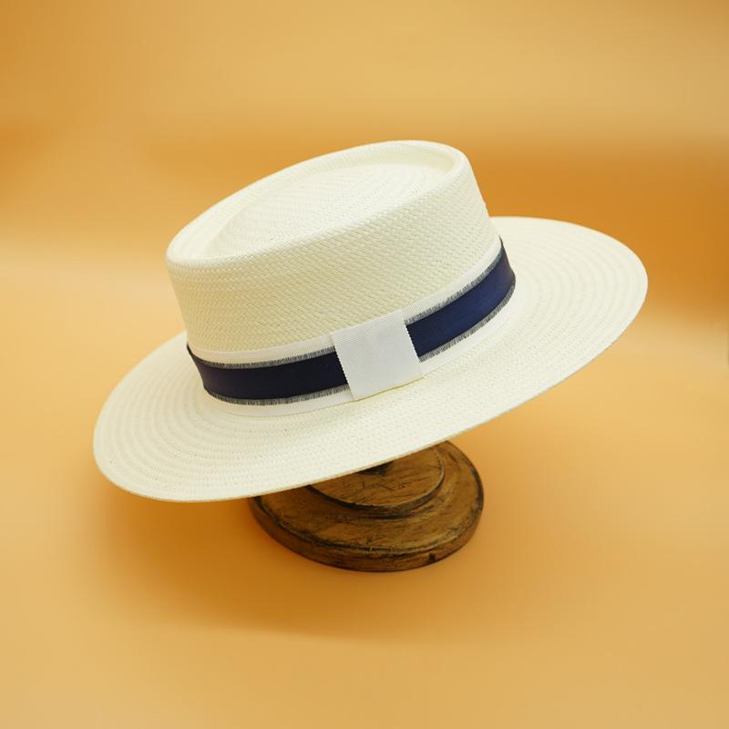 French Elegant Retro White Hand-Woven Flat Top Top Hat Women'S Summer Sunshade Vacation Foreign Trade Panama Straw Hat 56-58cm