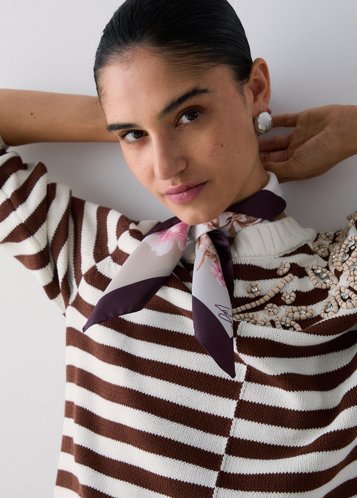Liu Jo Foulard Piccolo A Fiori, Marrone, Taglia Unica