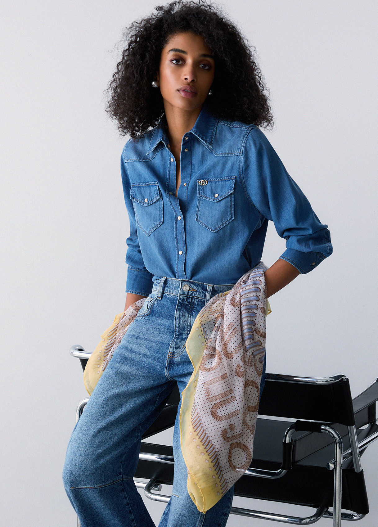 Liu Jo Foulard Con Stampa Cuore, Denim Chiaro, Taglia Unica