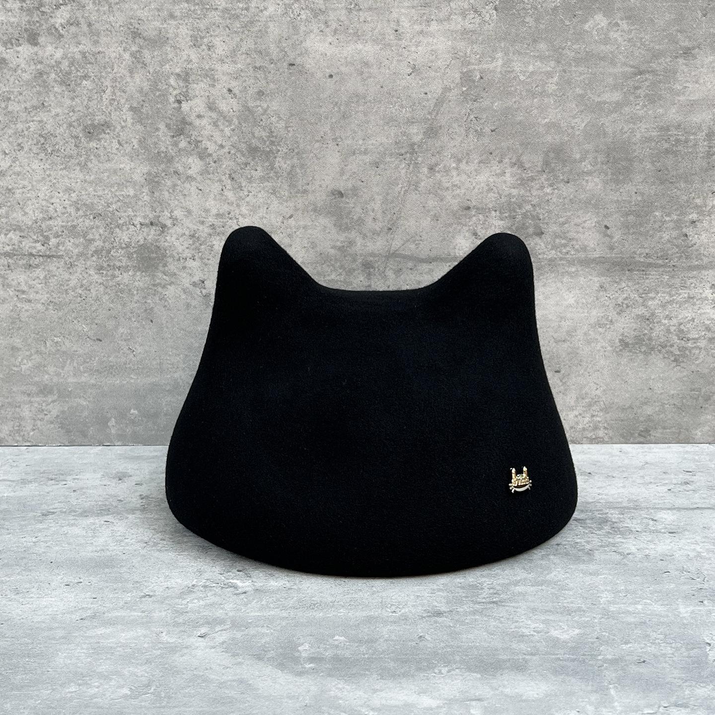 Søte katteører ullberet dame casual allsidig ullen malerhatt viser ansikt liten aldersreduserende topphatt 56-58cm