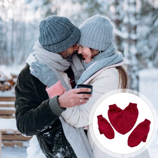 3 st Par Handhållande Vantar Hjärta Form Delad Vante Två Personers Handskar Romantisk Stickad gul