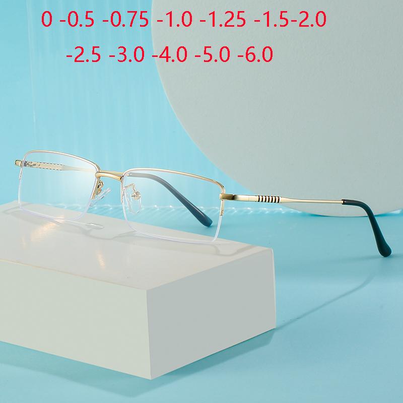 0 -0,5 -0,75 Til -6,0 Halvinnfatning Firkantede Nærsynthetsbriller Med Styrke Mote Anti Blått Lys Reseptbelagte Briller Kvinner Menn cm