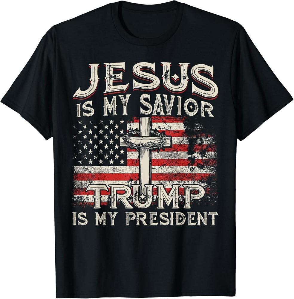 Jezus Is Mijn Redder Trump Is Mijn President Amerikaanse Vlag T-shirt Unisex T-shirt cm