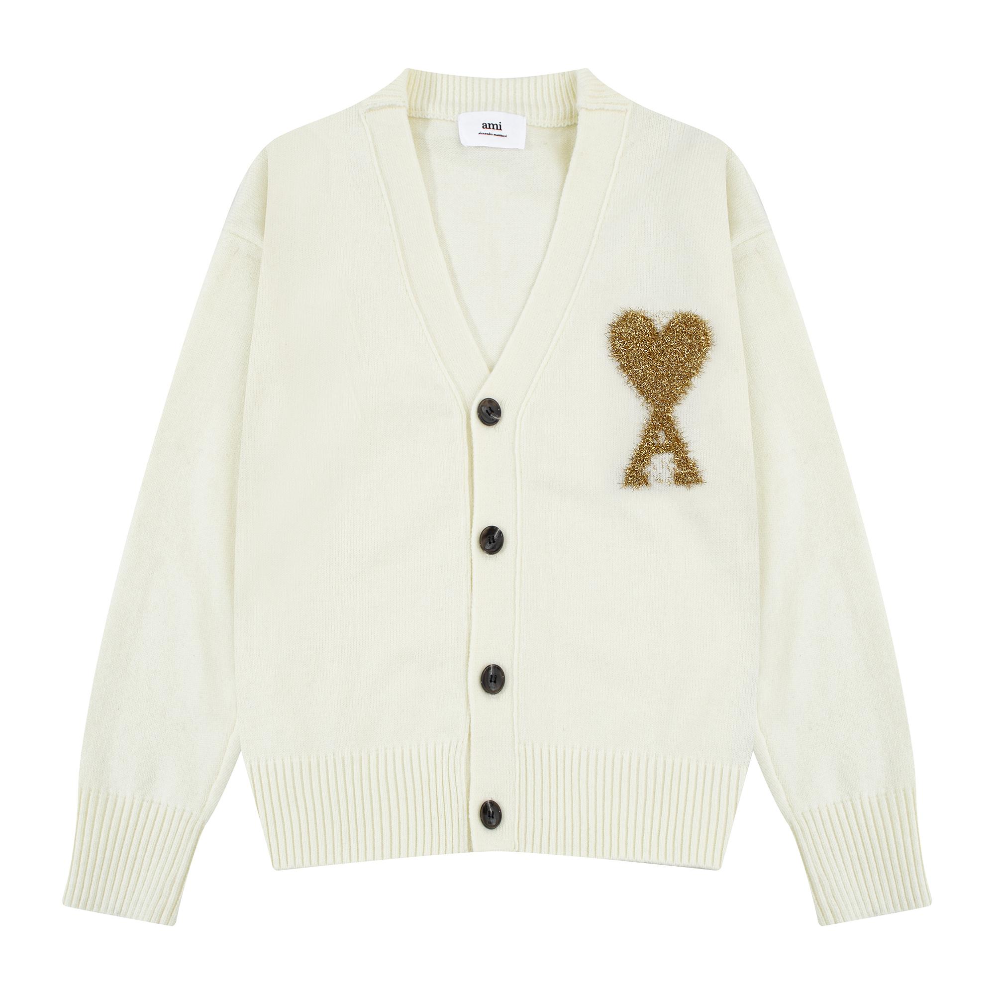 AMI 2025 Cardigan en laine pour couple avec broderie cœur blanc classique cm