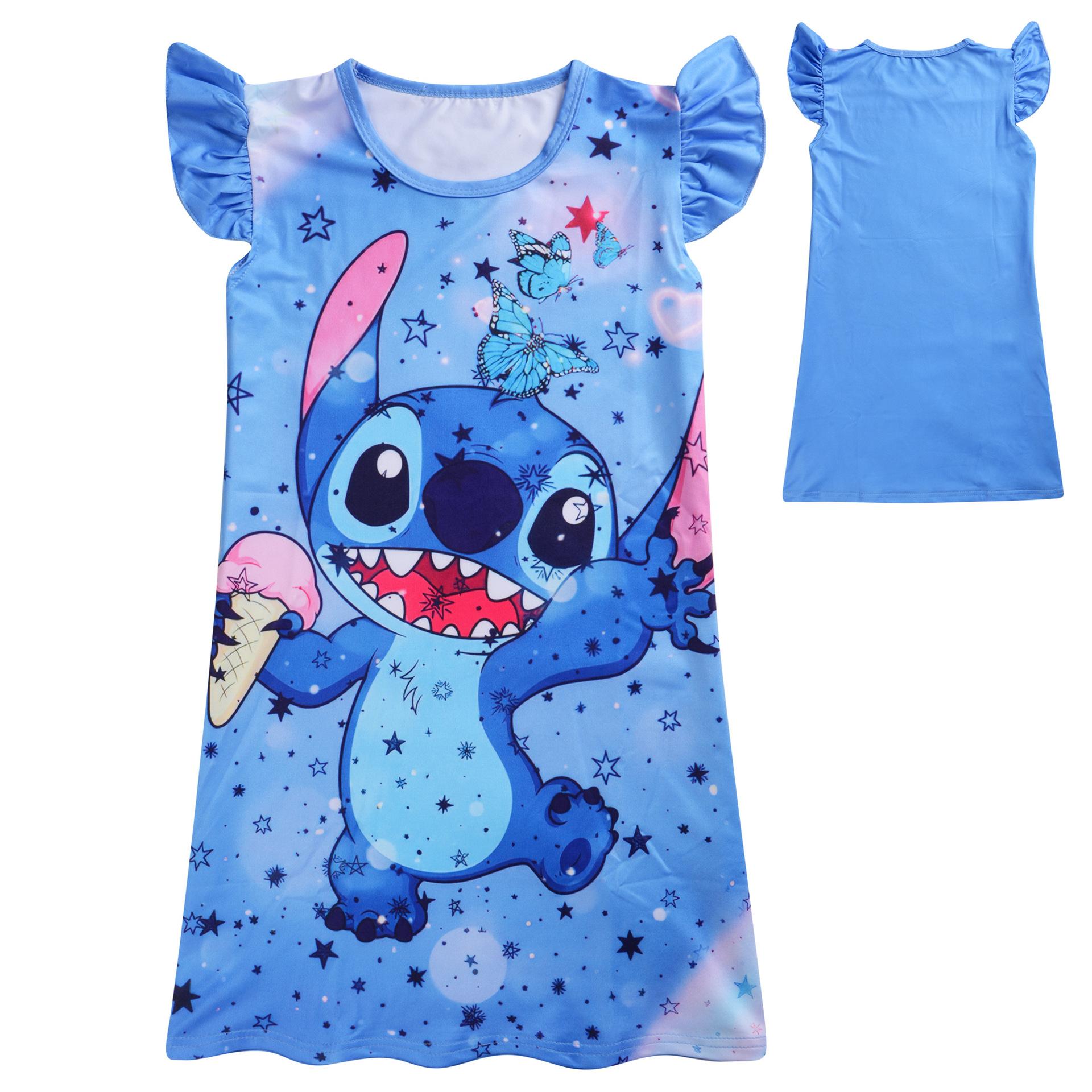 Neues Kinder-Nachthemd Stitch Rüschenrand Mädchen Fledermausärmel Rock cm violett