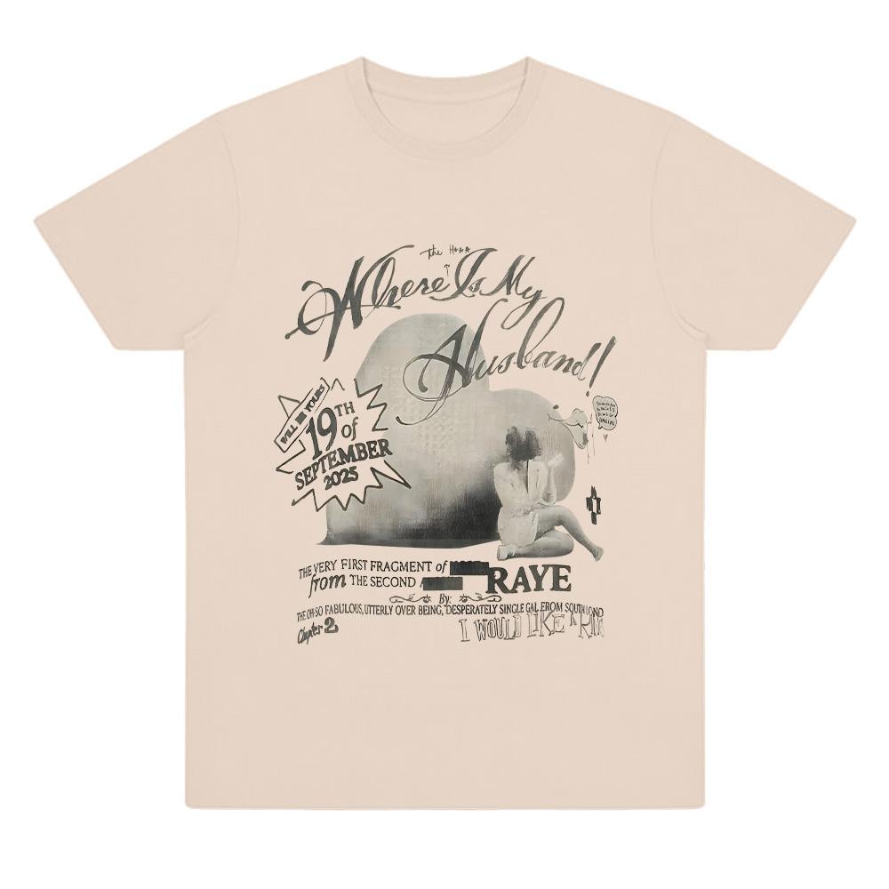 Raye Where Is My Husband ! Print T-shirt Men Women Retro Aesthetic Clothing Fashion Loose Streetwear Casual Soft Cotton T Shirts cm sand