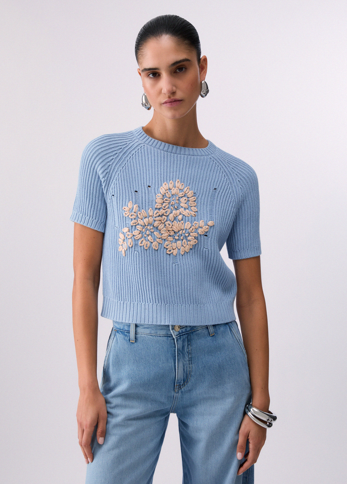 Liu Jo Maglia Con Ricamo In Rafia, Azzurro, M