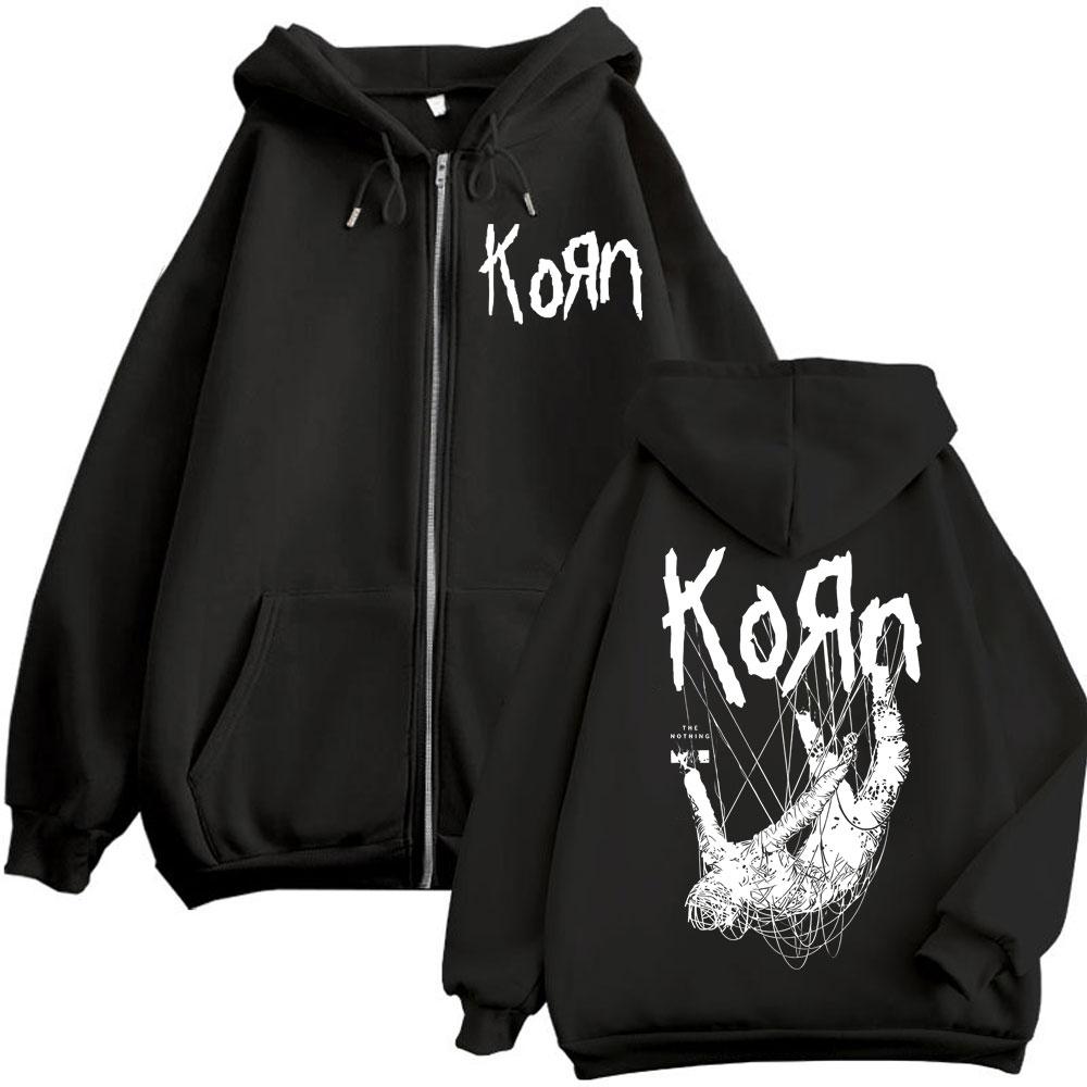 Rock Band Korn The Nothing Album Zipper Hoodie Gothic Vintage Zip Up Pullovers Men Women Casual Fashion Sweatshirt Streetwear cm gray