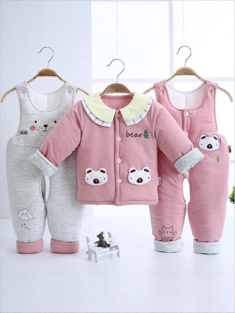 Ensemble trois pièces automne/hiver en pur coton pour bébé: Salopette unisexe pour 0-12 mois, épaisse et chaude 73cm