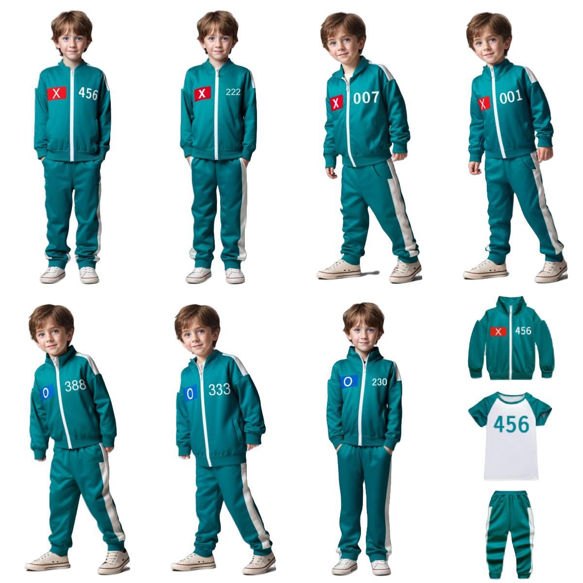 3tlg./Set Kinder Korea Film Spiel Druck Langarm Jacke T-Shirt Hose Outfit Jungen Mädchen Kinder Halloween Cosplay Verkleidungsparty Kostüm cm