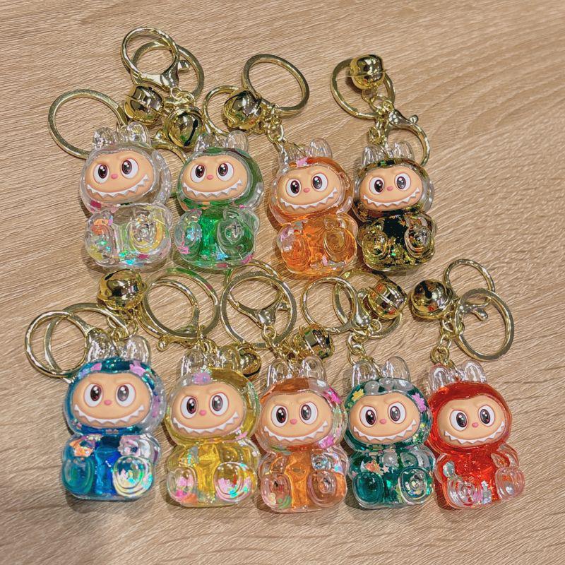 Cartoon Labubu Quicksand Keychain Pendant For Women Girls Cute Doll Key Ring Exquisite Backpack Decoration Accessories Gifts