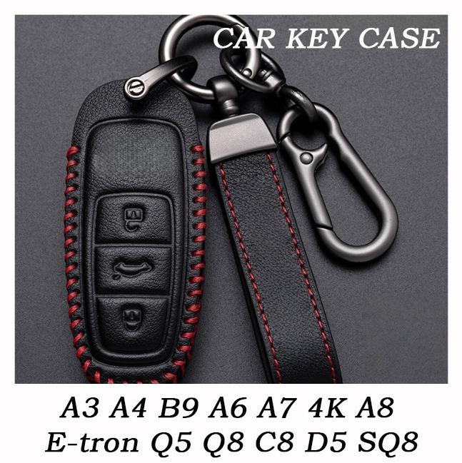 Housse de Protection de Clé Pour A3 A4 A5 A7 A6 C8 Q8 Q7 Q5 Q4 Q3 E-tron Télécommande Porte-Clé Coque Porte-Clés Cuir Métal Accessoires de Voiture