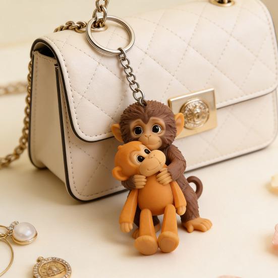 Ketting Cartoon Pluche Harig Driedimensionaal Realistisch Uiterlijk Zacht Schattig Meisje Bont Aap Sleutelhanger Vrouwen Tas Ornament Handtas