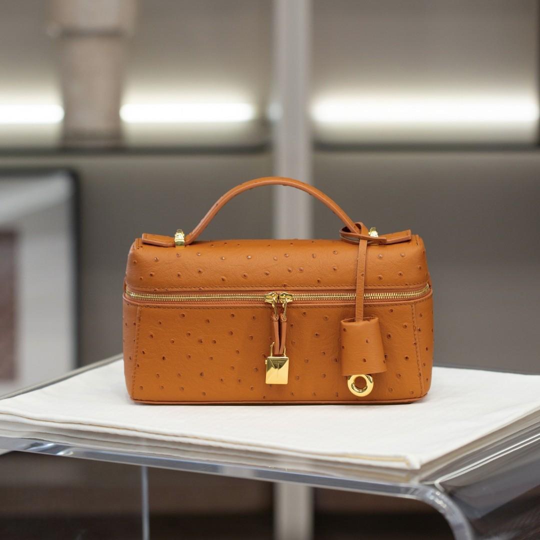 Echte leren LP19 struisvogelpatroon kleine doos tas - 2024 Franse schouder- en koerierstas