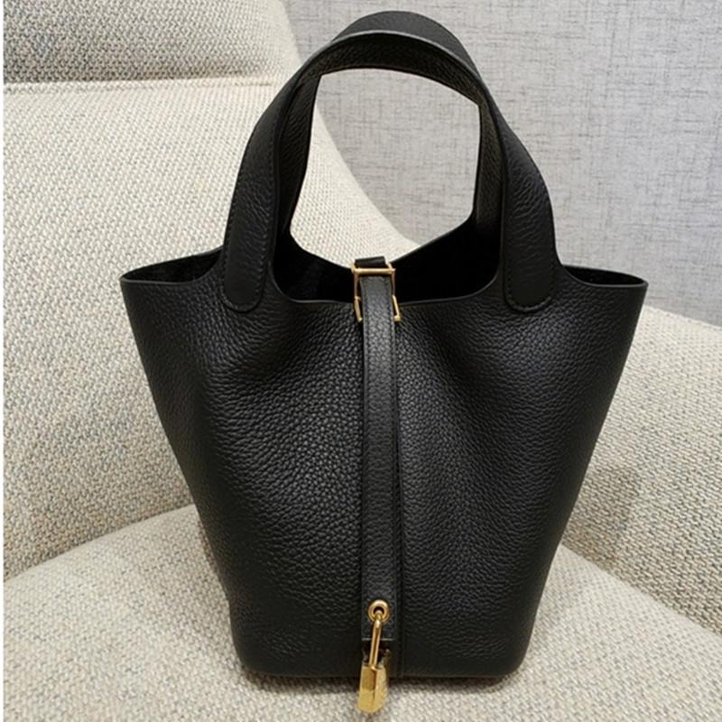 Sac pour femmes en cuir véritable, sac seau, panier à légumes classique polyvalent, sac pour femmes en peau de vache de couche supérieure, nouveau sac
