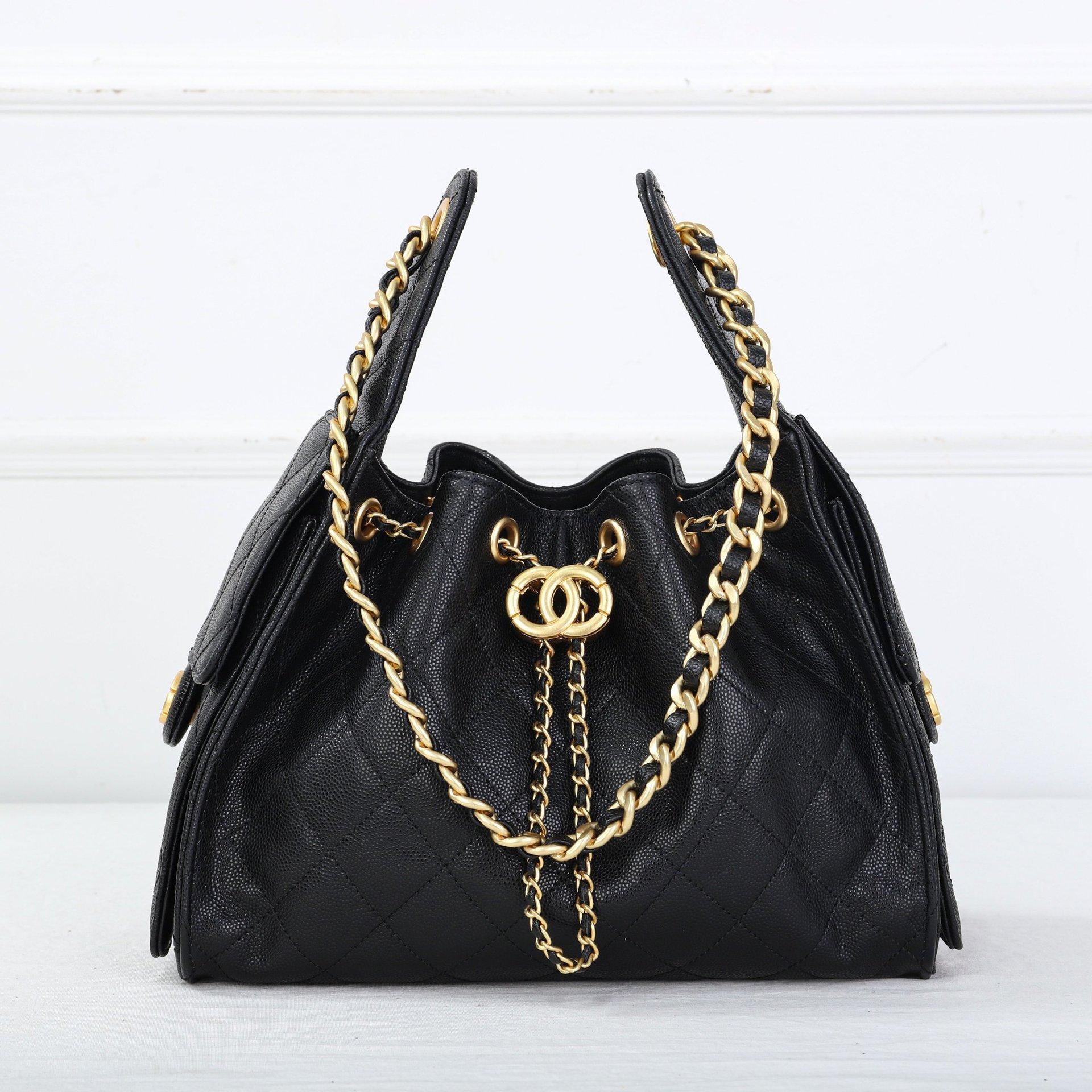 25 Nieuwe leren damestassen kaviaar patroon bal patroon grote capaciteit hippie tas hobo diamant ketting trekkoord okseltas
