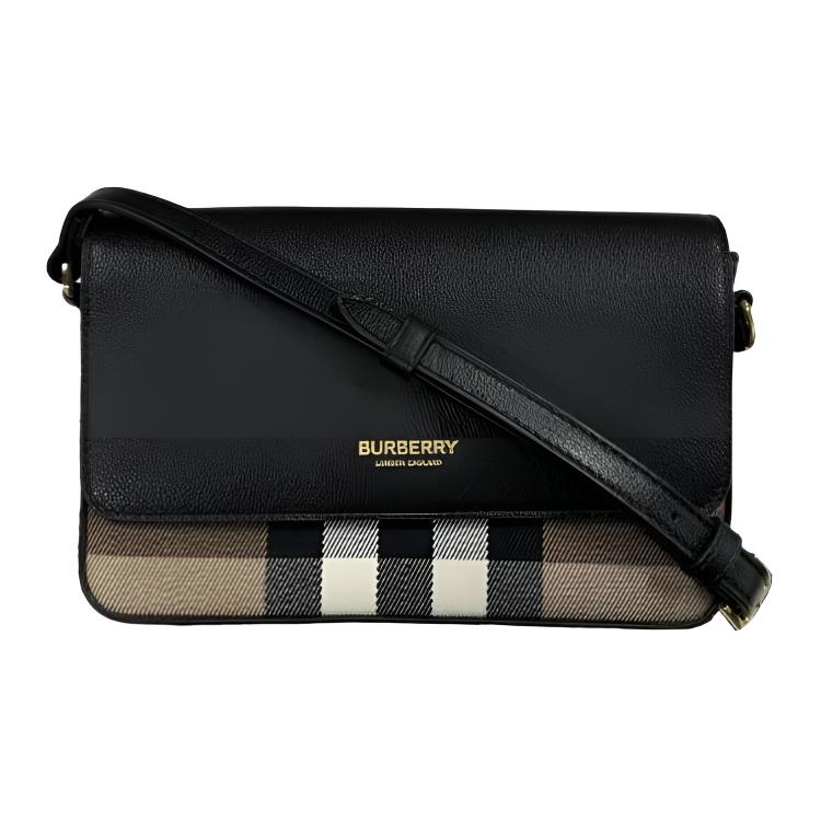 Sac à Bandoulière Classique Burberry Rayé Cuir et Toile Sac à Bandoulière Femme Bleu Marine 81072691