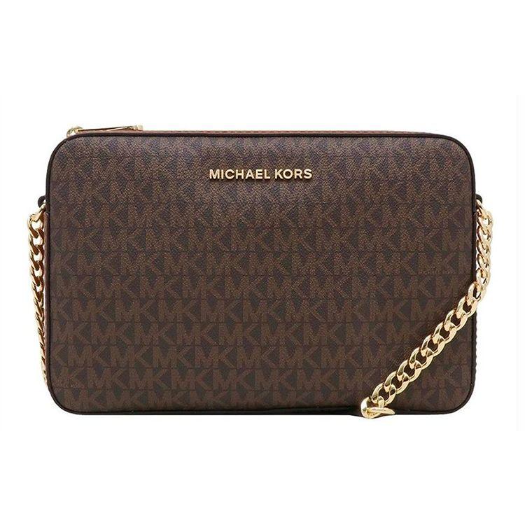 Michael Kors Mk Jet Set Lange Vintage Monogram Logo Ketting Camera Tas Dames Schoudertas Bruin 35F8GTTC3B-BROWN