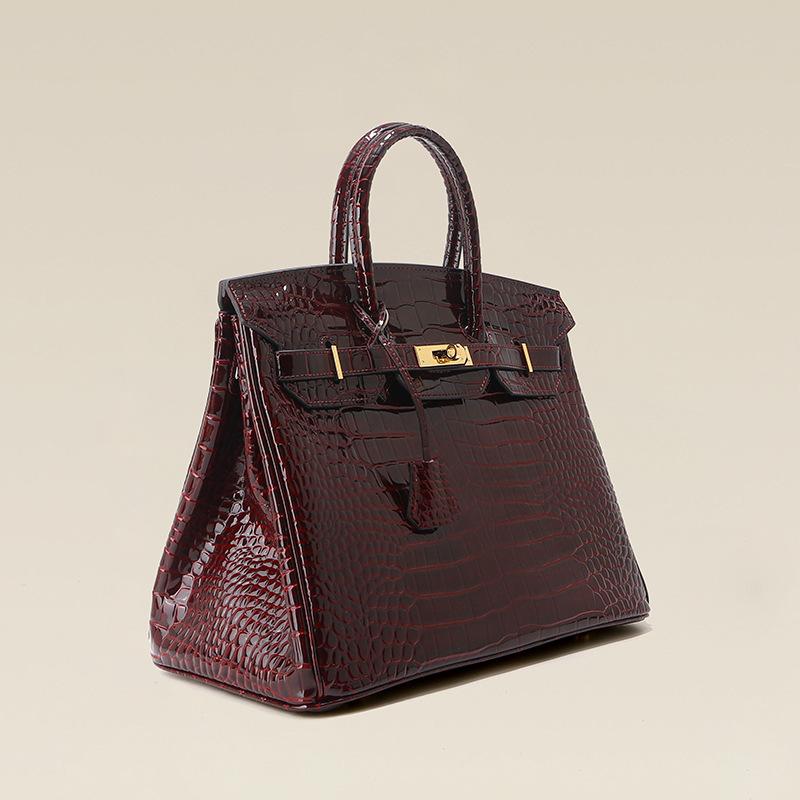 Nieuwe leren platina tas met krokodillenmotief, modieuze tas voor dames, grote tas en schoudertas in koeienhuidstijl rood