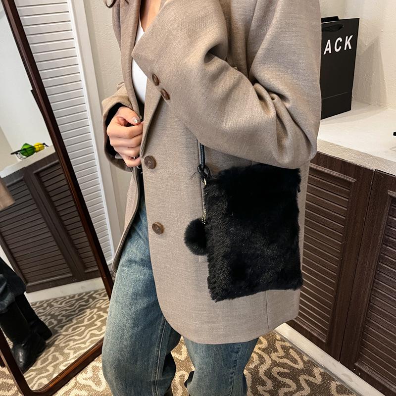 Autumn/Winter Trendy Furry Mini Phone Bag - Plush Vertical Crossbody & Coin Purse for Women pink