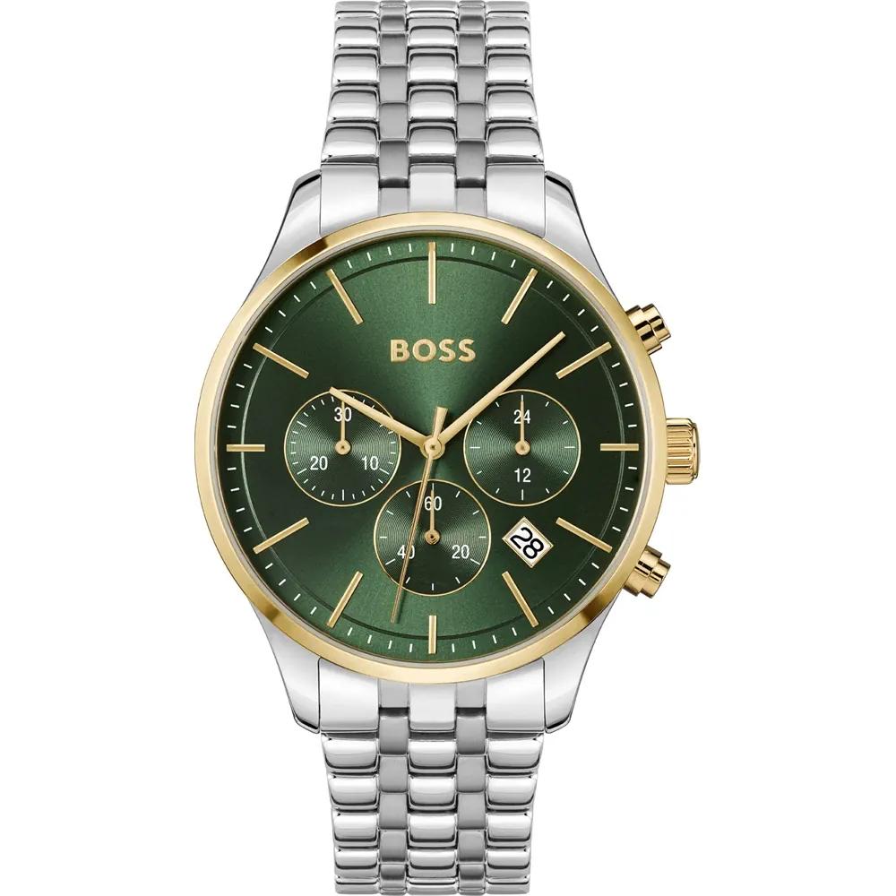 BOSS Avery Groene Wijzerplaat Roestvrij Staal Zilveren Band Heren Quartz Horloge HB1514159 groen