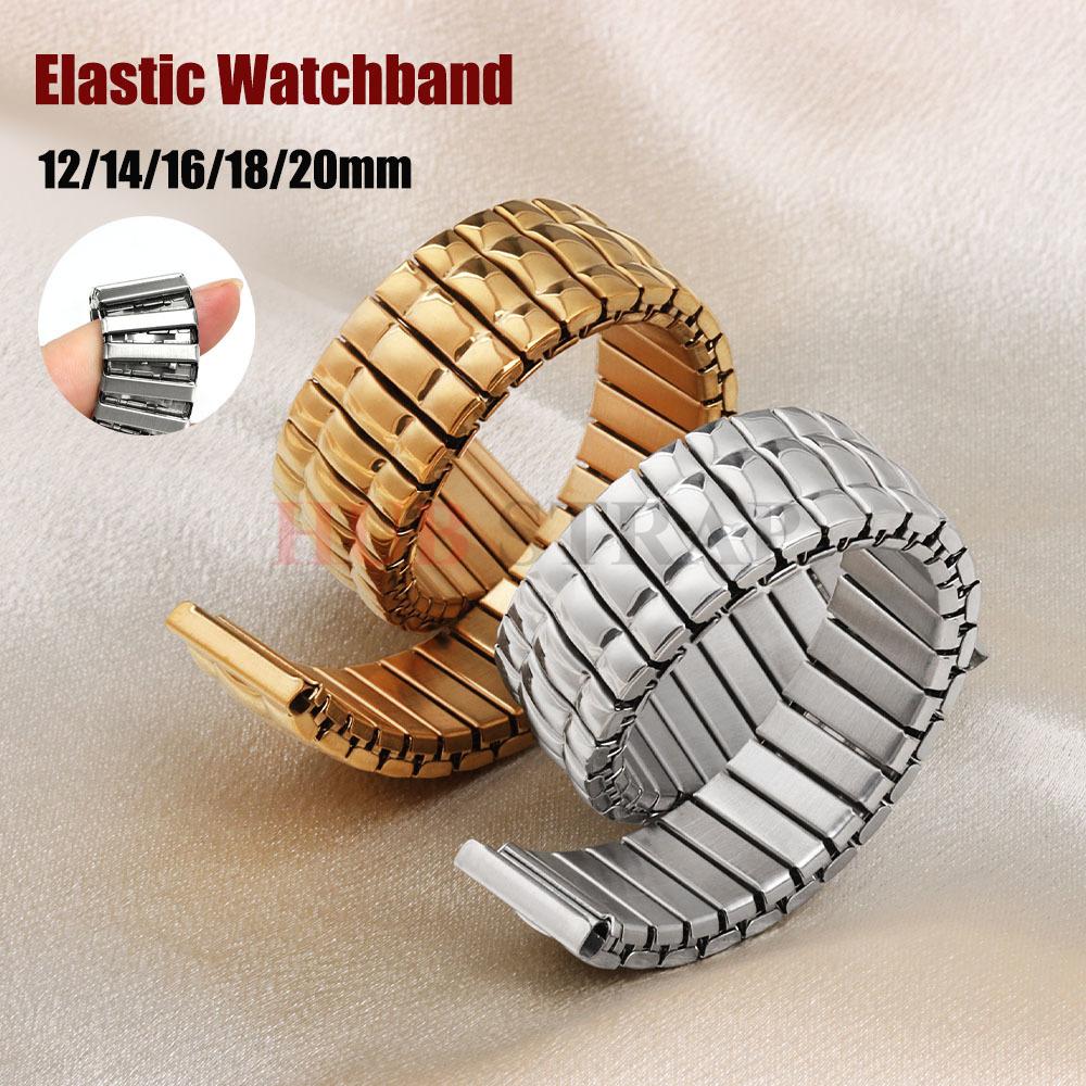 12/14/16/18/20mm Dehnbares Edelstahl-Uhrenarmband Universelles Armband Metall Elastisches Band für Herren Damen Uhrenzubehör silber