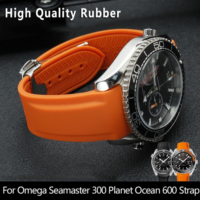 20mm 22mm Gebogen Einde Rubber Siliconen Horlogebanden Voor Omega Seamaster 300 Speedmaster Band Merk Horlogeband Blauw Zwart Oranje