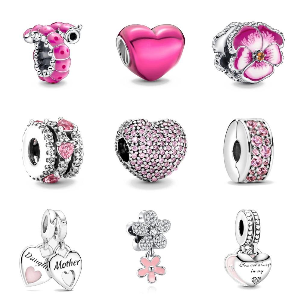 Solid Kobber Rosa Serie Sommerfugl Blomst Hjerte Venner Kjærlighet Mamma Perler Passer Original Europeisk Charms Armbånd Smykker