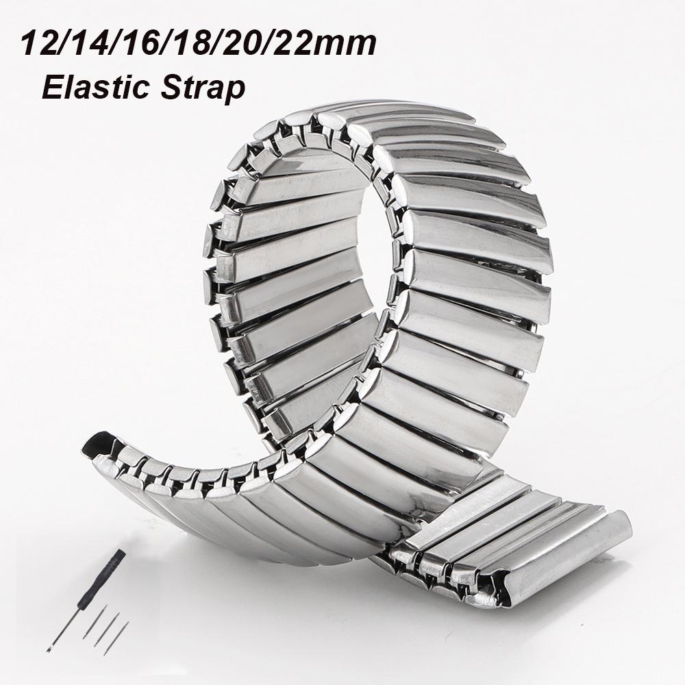 Armband i rostfritt stål Elastiskt band Metall Universal Klockarmband Ersättningsarmband Armband 12mm 14mm 16mm 18mm 20mm 22mm gyllene