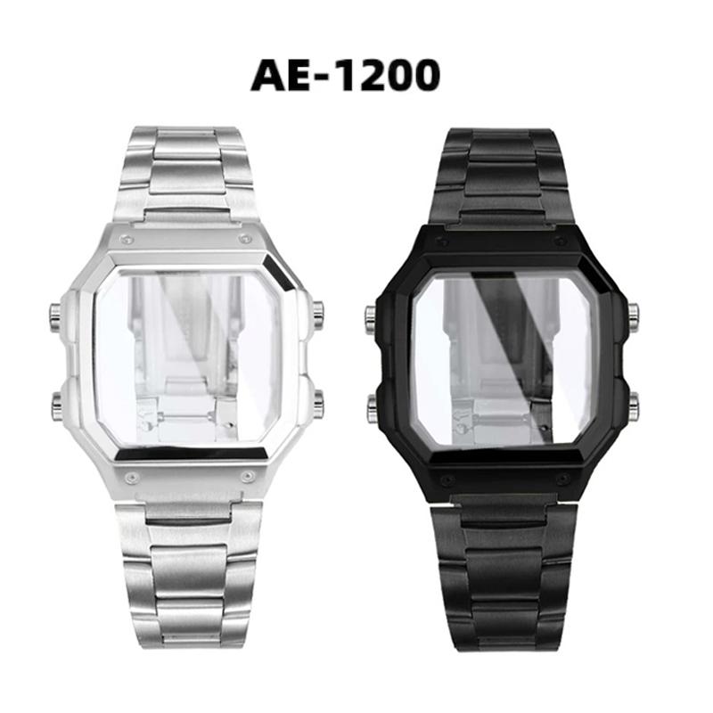 AE-1200 Volledig Metalen Kast Band Mod Kit Voor Casio 3299 AE-1200WH AE1300 Roestvrijstalen Horlogeband Glasfolie Schroef Bezel Armband
