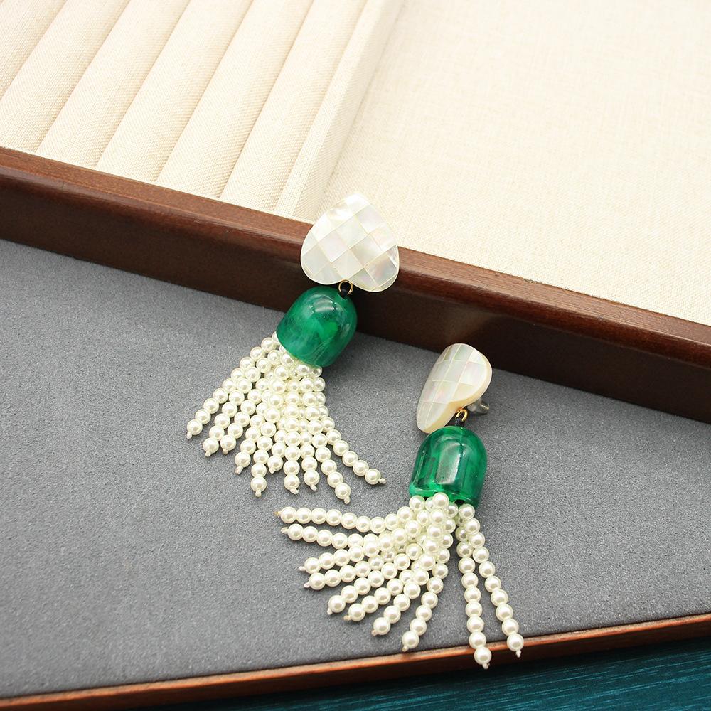Monies Jelly Glassed Tassel Earrings Lange Små Duftende Stil Segl Høy Sans Lys Luksus Stil Øredobber Kvinnelige Skall