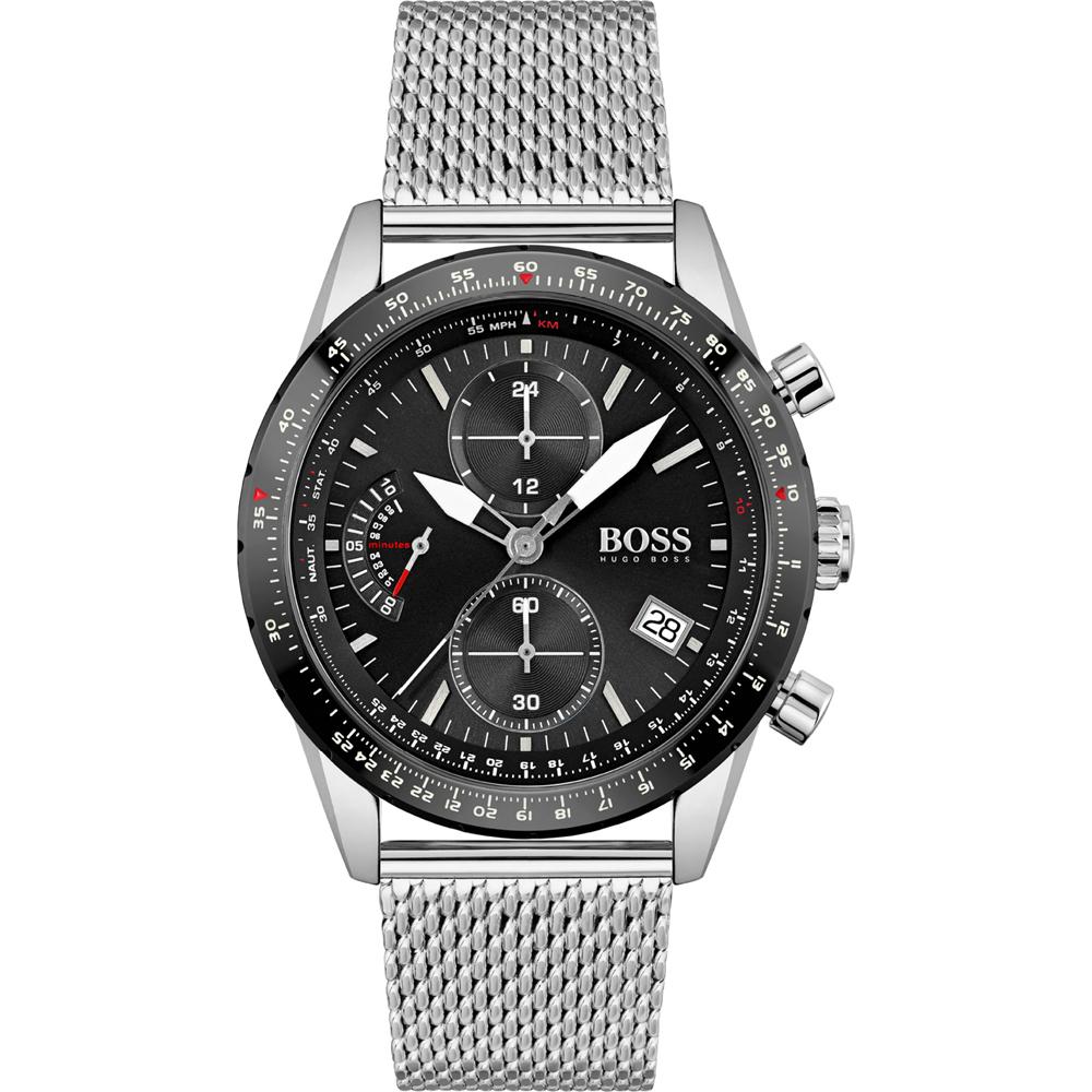 BOSS Pilot Edition Cadran Noir Bracelet Maille Acier Inoxydable Argenté Montre Quartz Homme 1513886 noir