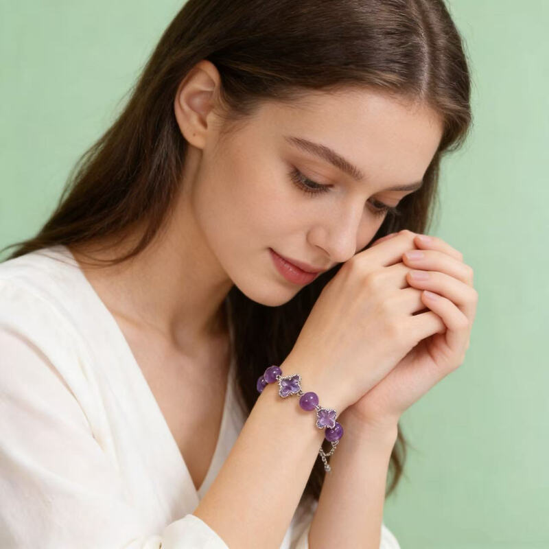 VoxorAI L8 [Amethyst Silber Sprache] Kristallarmband, natürliches Amethystarmband, DIY Original handgefertigtes modisches und hochwertiges Kristallarmband