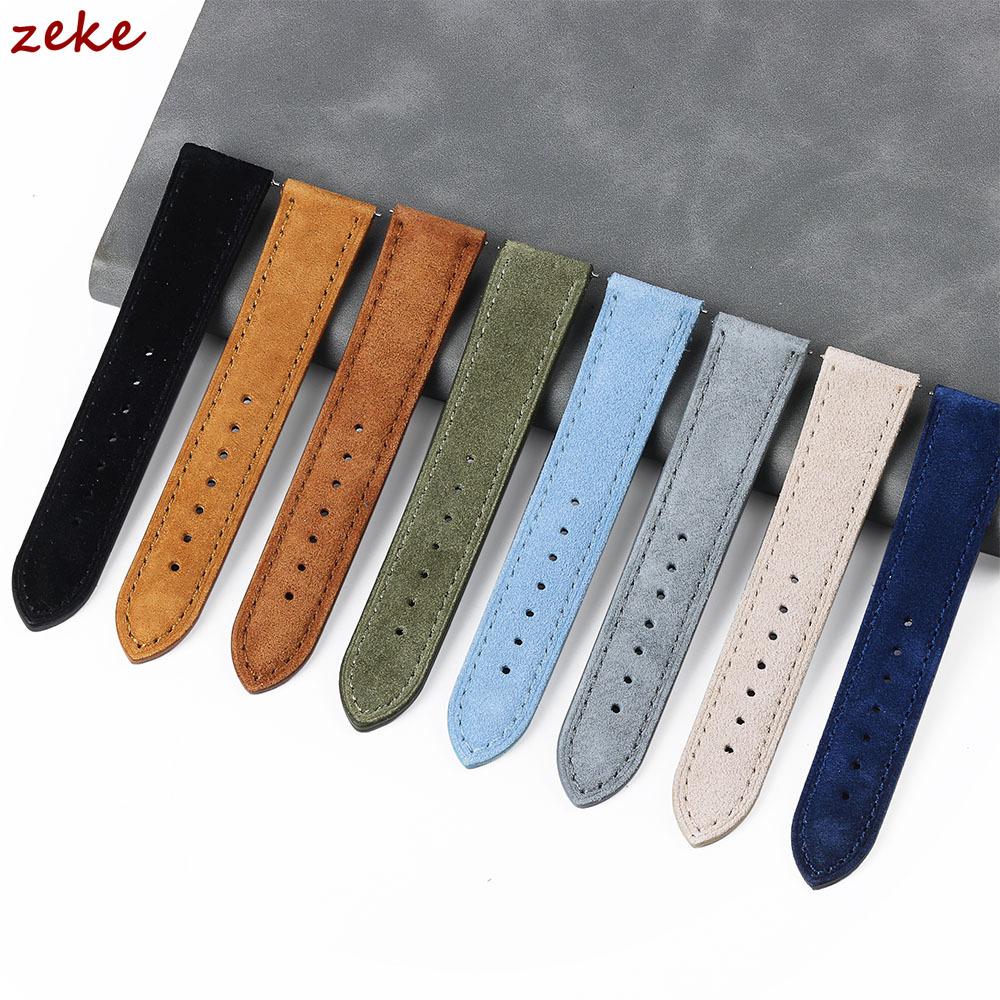 Genuine Suede Cowhide Watch Strap 18mm 19mm 20mm 22mm 24mm Watch Band Vintage Brown Green Quick Release Bracelet for Men Women