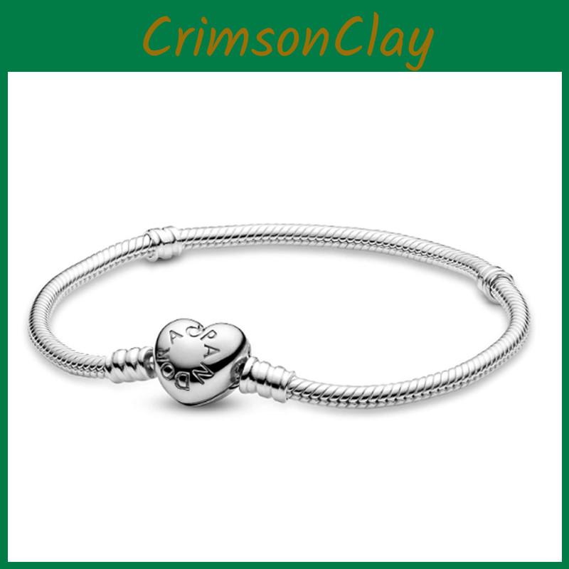 Stylish And Romantic Pandora Heart Clasp Charm Bracelet With Snake Chain And Box
