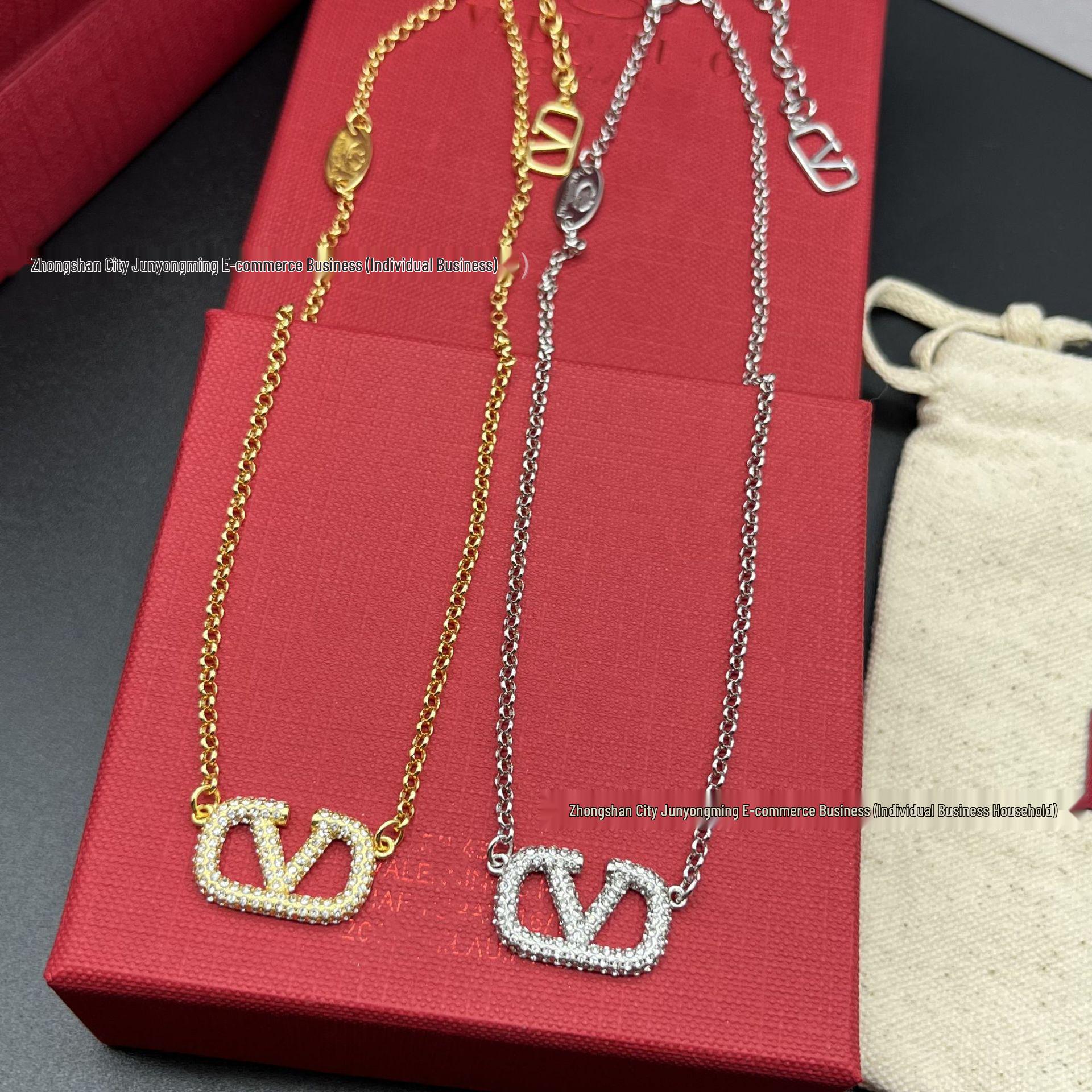 Valentino Luxury V Diamond-Inlaid Pendant Necklace: Women's Trendy Square Design