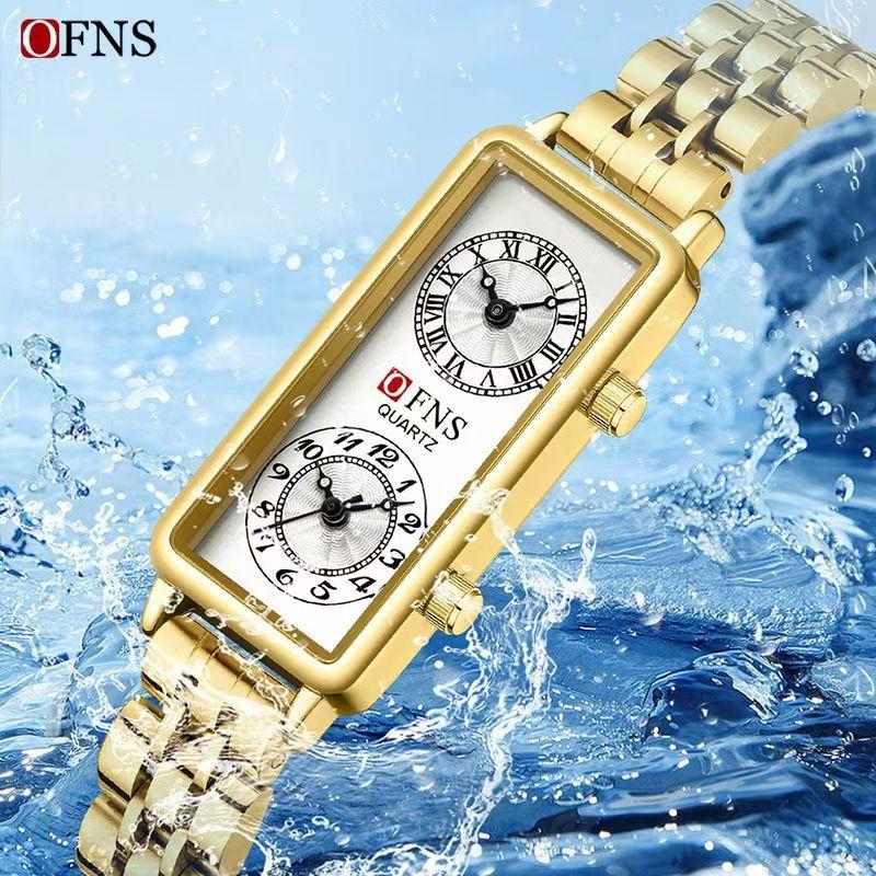 Dual Movement Watch Women Quartz Wristwatch Luxury Ladies 2 Time Zone Clock Stainless Steel Black Leather Clock green/gold