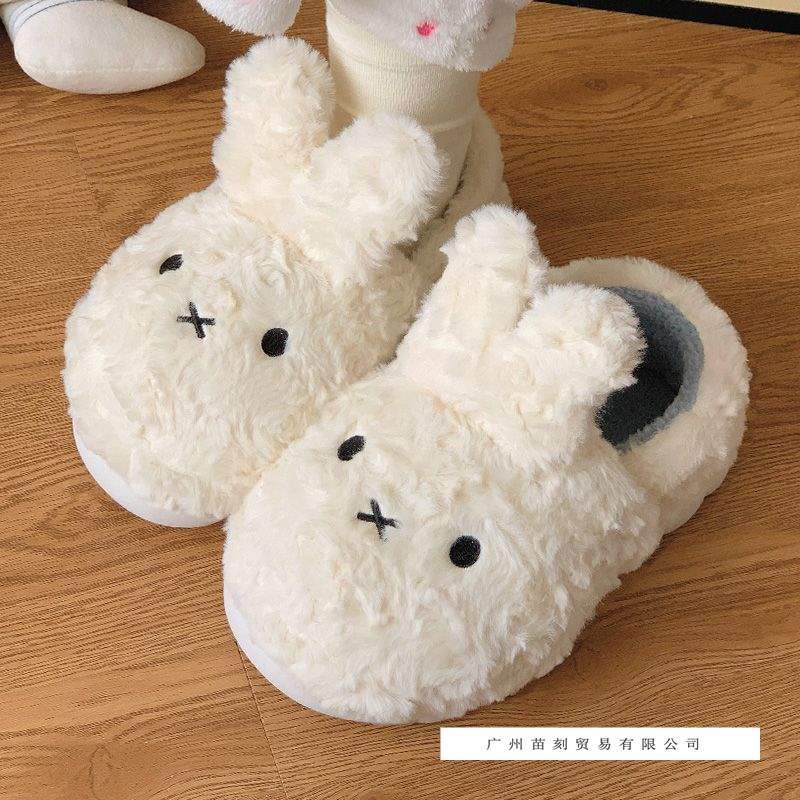 Schattige Miffy konijn katoenen pantoffels dames herfst vier seizoenen buitenkleding antislip dikke zool huis binnen tas en warme katoenen schoenen va