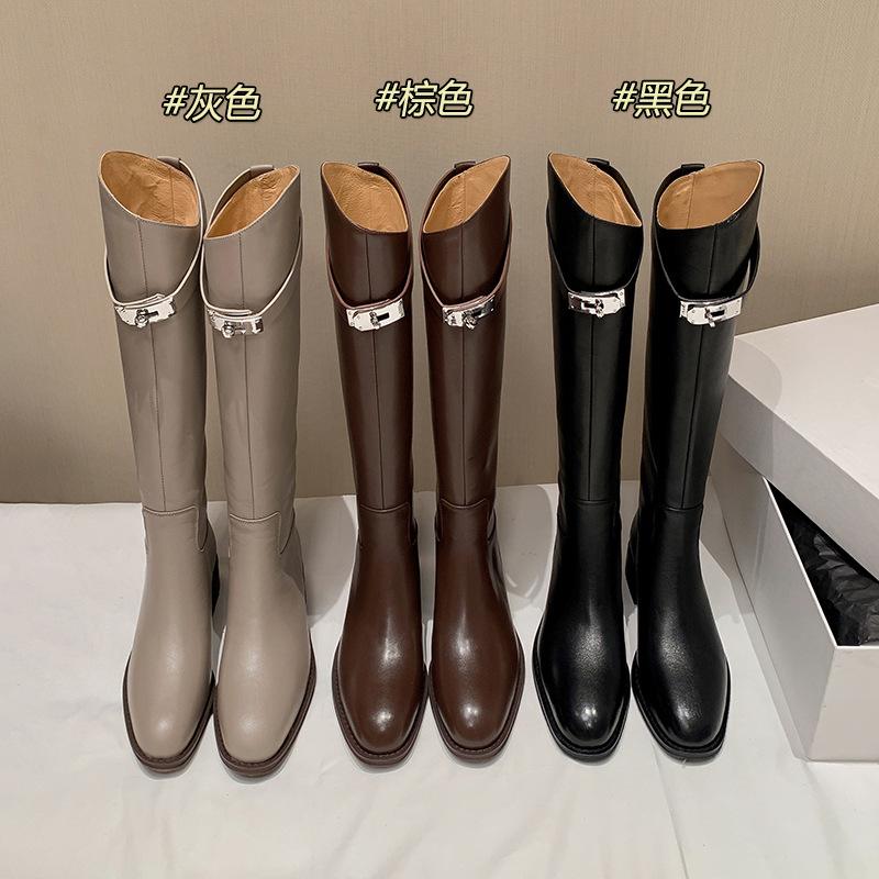Lock leather knight boots diagonal slim boots winter women's shoes new high boots long boots fashion boots women cm