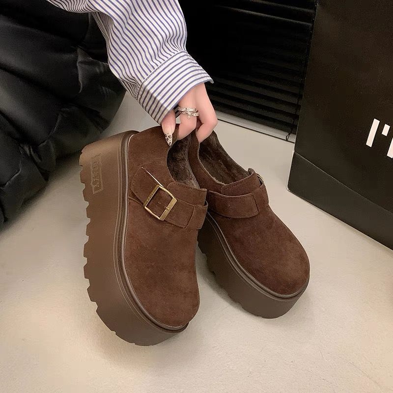 Retro Birkenstocks dame alt-i-ett tykk såle forhøyet fløyel én stropp myk såle bomull enkel sko cm Gul