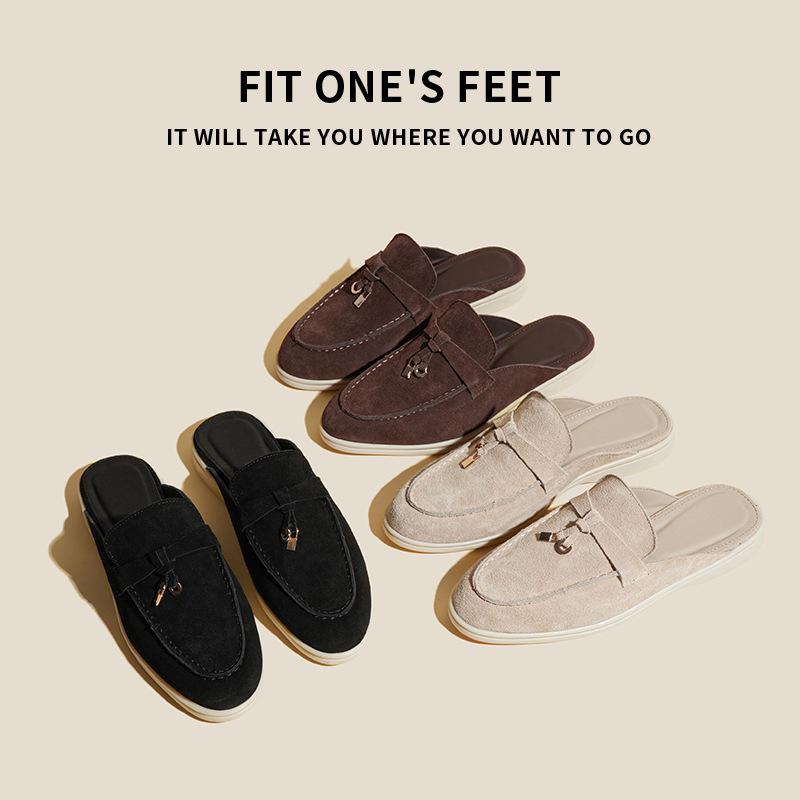 Damesko i ekte skinn med dusk og loafers - Casual slip-on med myk såle og spenne cm aprikos/sand