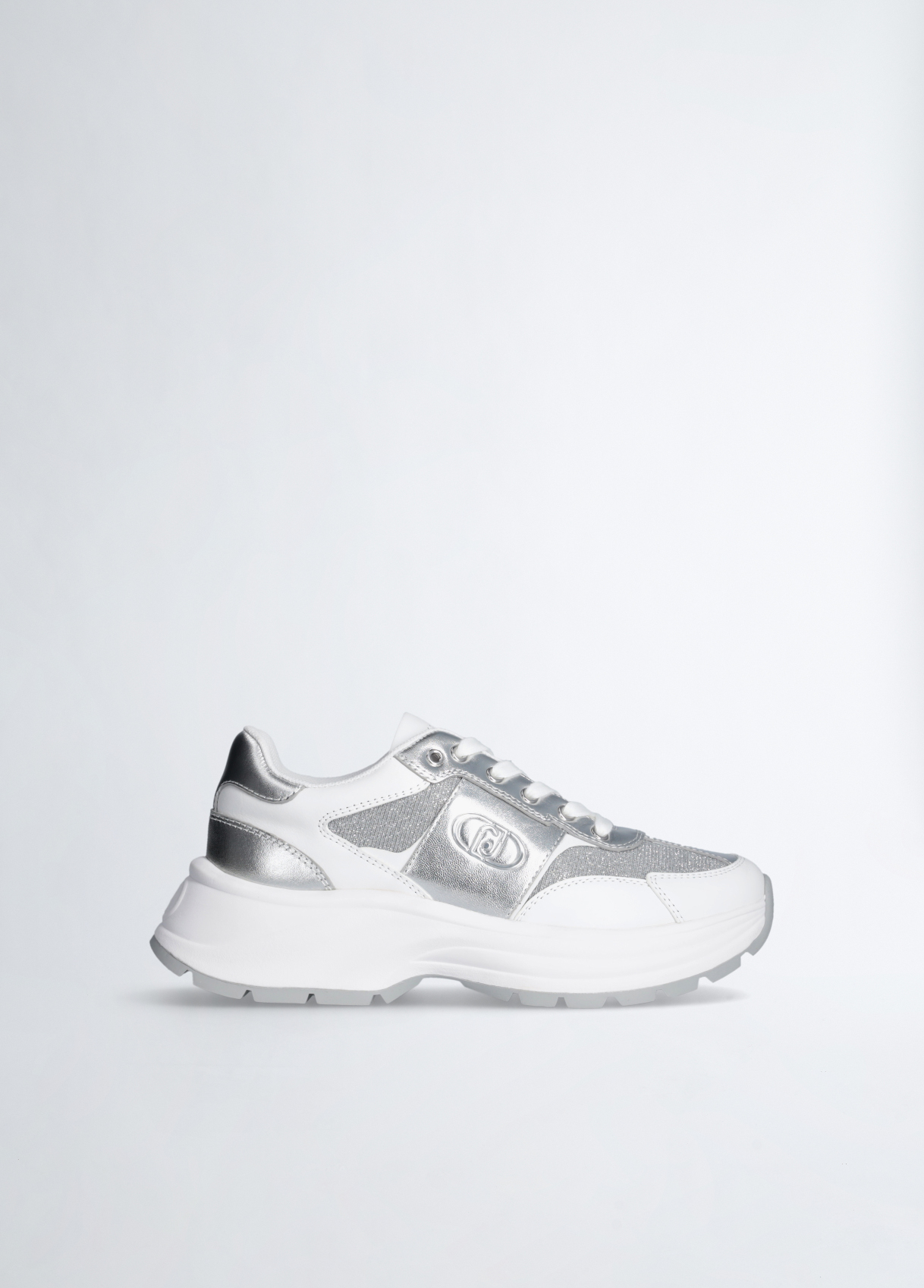 Liu Jo Sneaker Aus Leder Mit Lurex, Silber, 41