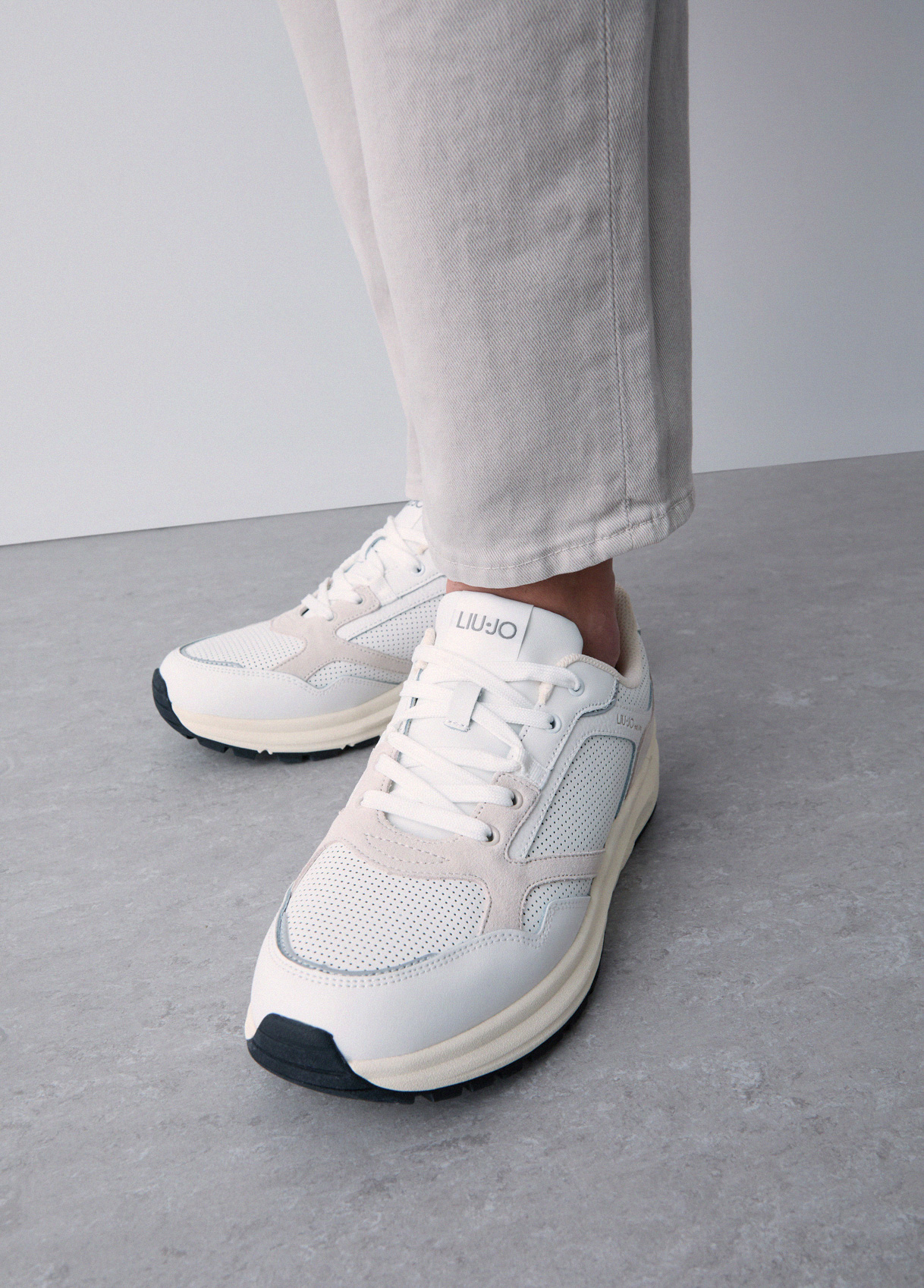 Liu Jo Herrensneakers Aus Leder Mit Lochmuster, Weiß Und Grau, 44