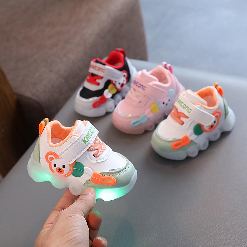 Waterproof Light-Up Leather Baby Shoes for 0-3 Year Olds, Non-Slip Walking Sneakers for Boys and Girls 15.5cm